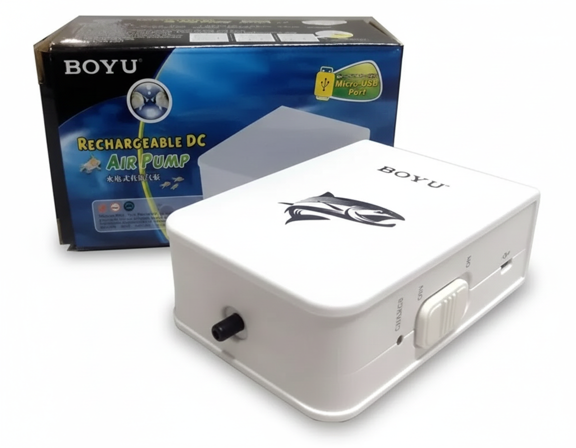 Compressor de ar portátil com bateria recarregável, ideal para aquários de pequeno e médio porte. Oferece aeração eficiente e silenciosa, garantindo oxigenação adequada para peixes e plantas aquáticas. Design compacto e prático, perfeito para emergências, viagens ou uso contínuo. Tecnologia Boyu assegura durabilidade e desempenho confiável. Carregamento rápido e autonomia prolongada, tornando-o essencial para qualquer aquarista que busca praticidade e qualidade.