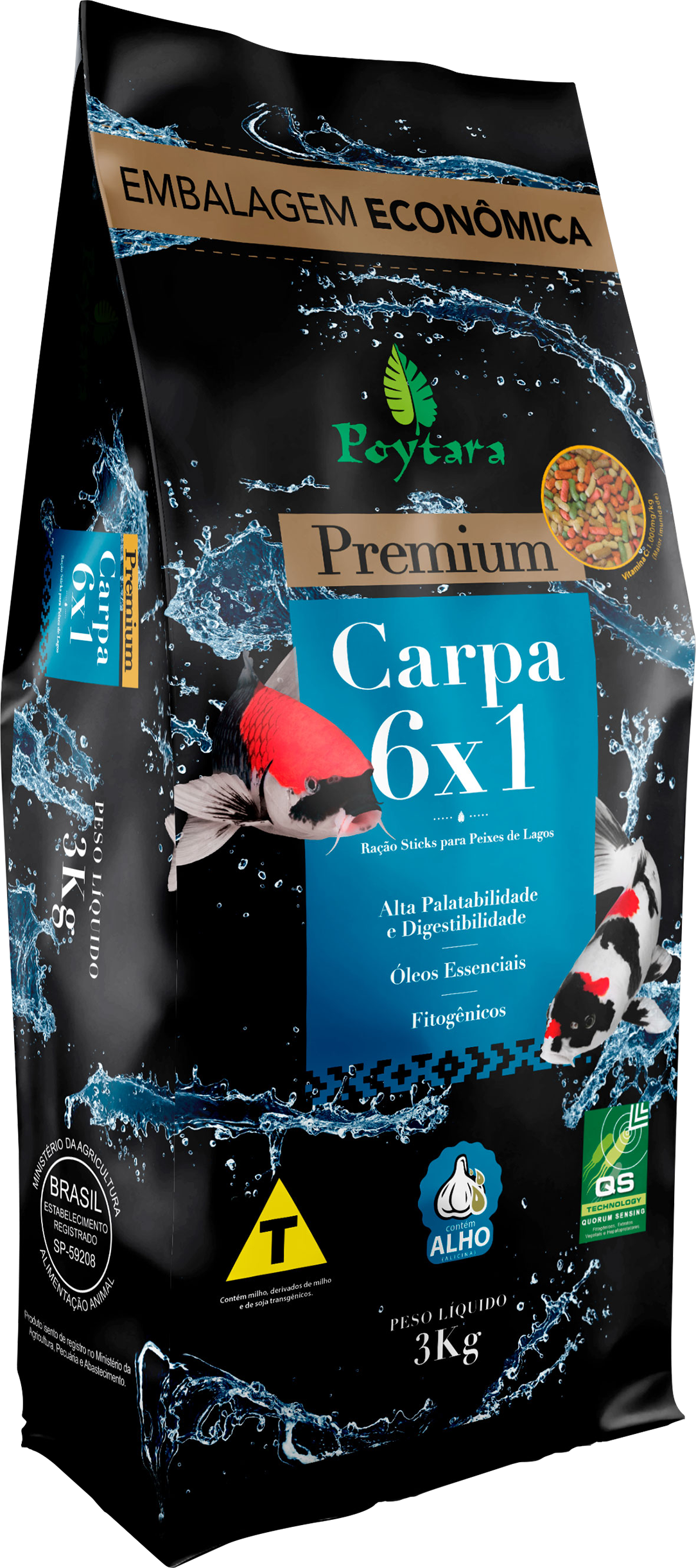 Poytara Carpa Mix 6x1 é uma ração especialmente formulada para o cultivo e alimentação de carpas, garantindo crescimento saudável e vigoroso. Com uma combinação balanceada de nutrientes essenciais, proporciona alta digestibilidade e melhora a imunidade dos peixes.