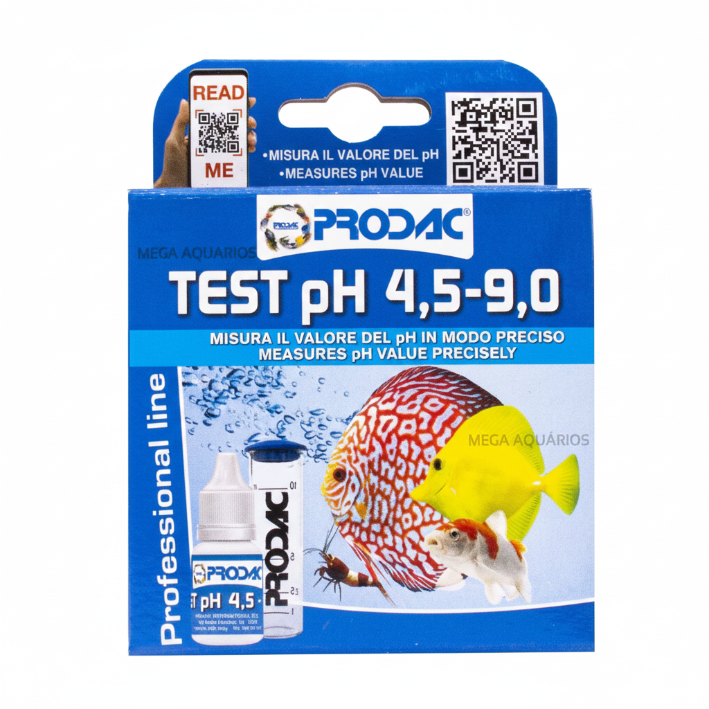 Teste de pH Prodac para aquários de água doce e salgada. Oferece leitura precisa e confiável do nível de acidez da água, essencial para manter as condições ideais do ambiente aquático. Fácil de usar, fornece resultados rápidos que ajudam a garantir a saúde e o bem-estar dos peixes e plantas aquáticas. Indispensável para aquariofilistas que buscam manter parâmetros de água estáveis e adequados.