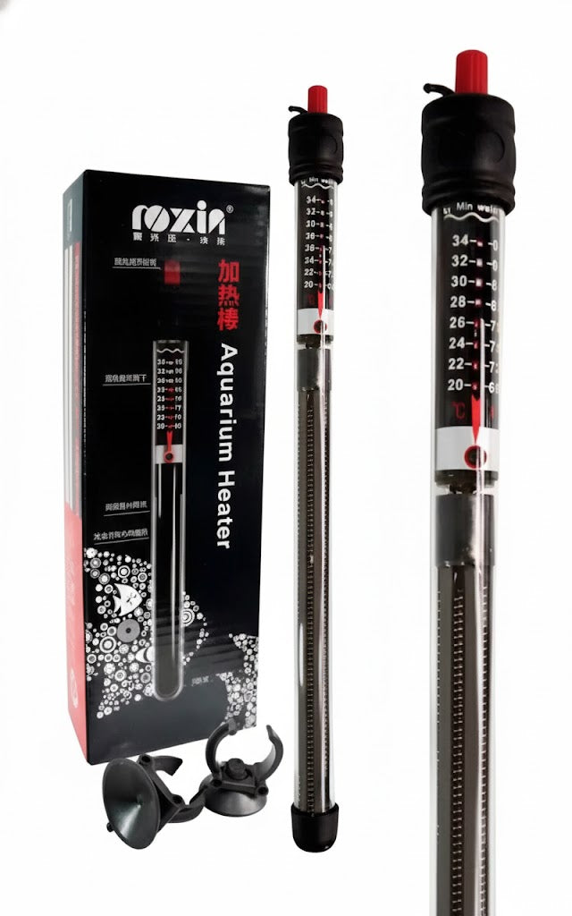 Aquecedor termostático Roxin de precisão profissional, ideal para manutenção estável da temperatura em aquários de água doce e marinha. Controle digital automático mantém o ambiente aquático no patamar ideal, prevenindo flutuações que prejudicam peixes e plantas. Construção robusta com sensor de temperatura sensível garante eficiência energética e durabilidade. Perfeito para aquaristas que exigem qualidade e confiabilidade no controle térmico do ecossistema aquático.