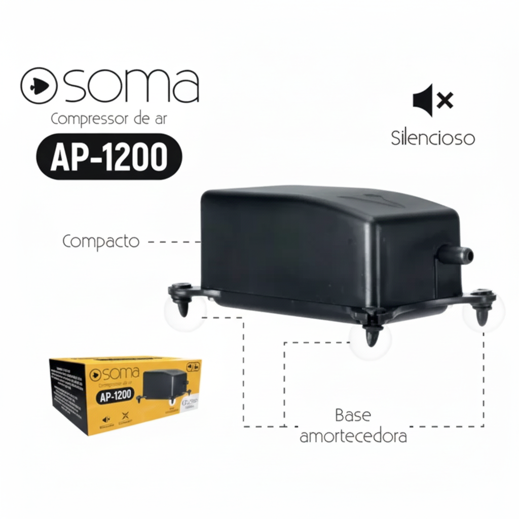 Compressor de ar compacto ideal para aquários e pequenas aplicações. O modelo AP-1200 oferece vazão de 1.2L/Min. Seu design reduzido economiza espaço sem comprometer o desempenho. Funciona com baixo nível de ruído, garantindo um ambiente tranquilo. Perfeito para quem busca qualidade e praticidade em um equipamento robusto e confiável.