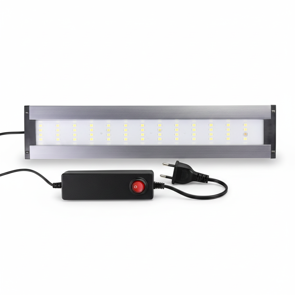Luminária de soma com tecnologia LED WRGB oferece iluminação versátil e eficiente para aquários. O sistema de cores ajustáveis permite criar ambientes personalizados, realçando as cores naturais dos peixes e plantas aquáticas. Ideal para tanques de água doce e salgada, proporciona economia de energia com excelente cobertura luminosa. Perfeita para aquariofilistas que buscam qualidade profissional e controle total da iluminação do aquário.